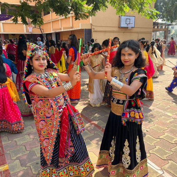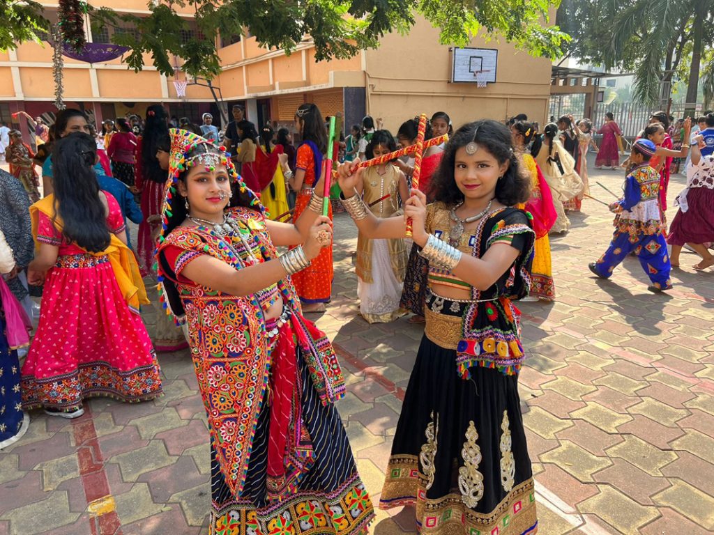 Garba Celebration : The Garba celebration added a lively touch to the cultural extravaganza, showcasing the rich tradition of Gujarati folk dance. Students, dressed in colorful traditional attire, enthusiastically participated in Garba and Dandiya Raas performances. The rhythmic beats of the music echoed through the school premises, creating an energetic and festive ambiance. The event also included a Garba competition, where participants showcased their talent and passion for this vibrant dance form.